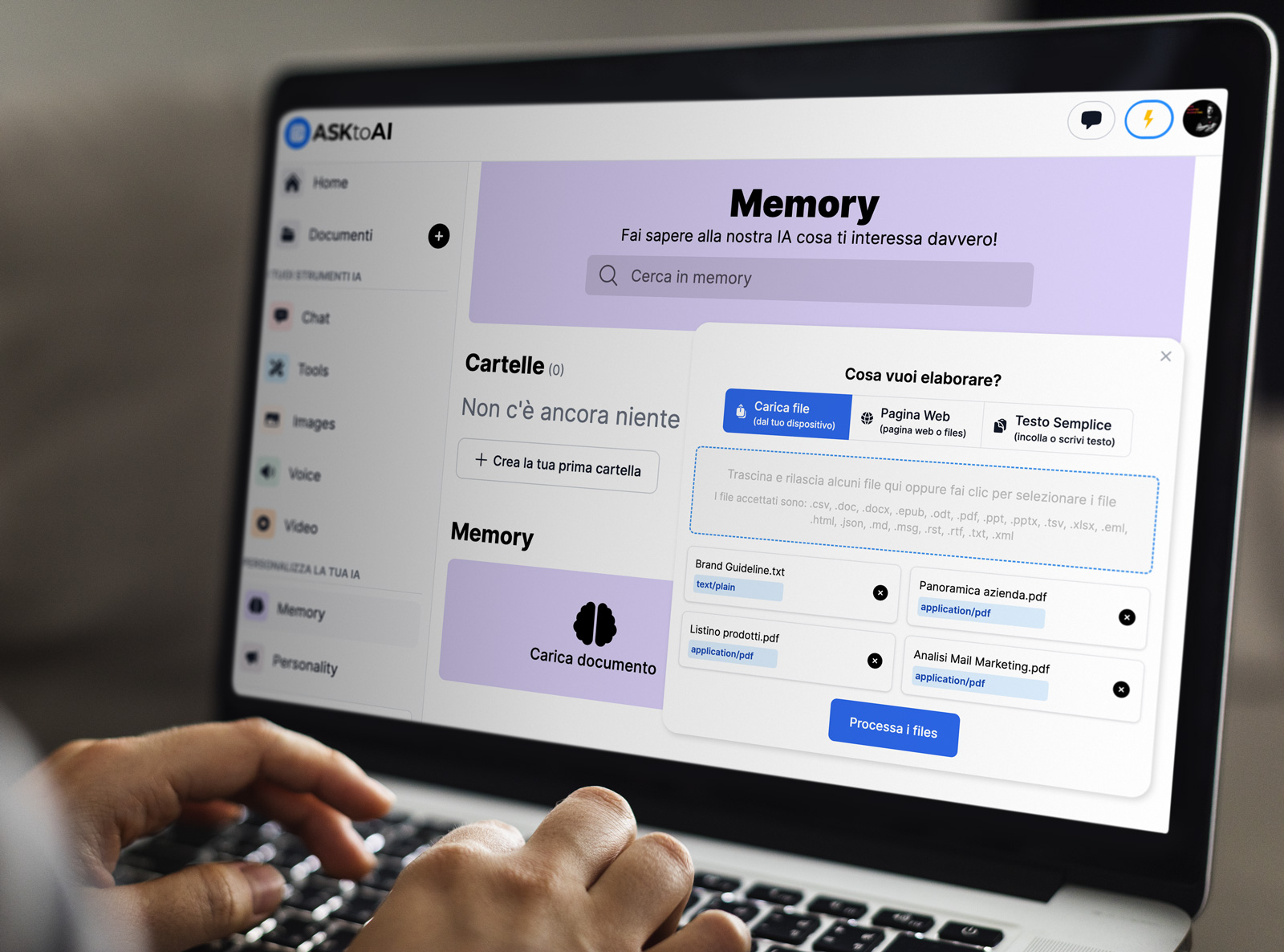 Memory Plus è molto più di una semplice funzione: è la chiave per trasformare il modo in cui interagisci con l'intelligenza artificiale. Immagina di poter fornire all'IA un contesto ricco e dettagliato, attingendo a documenti aziendali, relazioni, analisi di mercato, manuali tecnici e molto altro ancora. Con Memory Plus, i tuoi dati diventano una fonte inesauribile di conoscenza a cui l'IA può attingere per fornirti risposte accurate, pertinenti e perfettamente allineate con le tue esigenze specifiche.